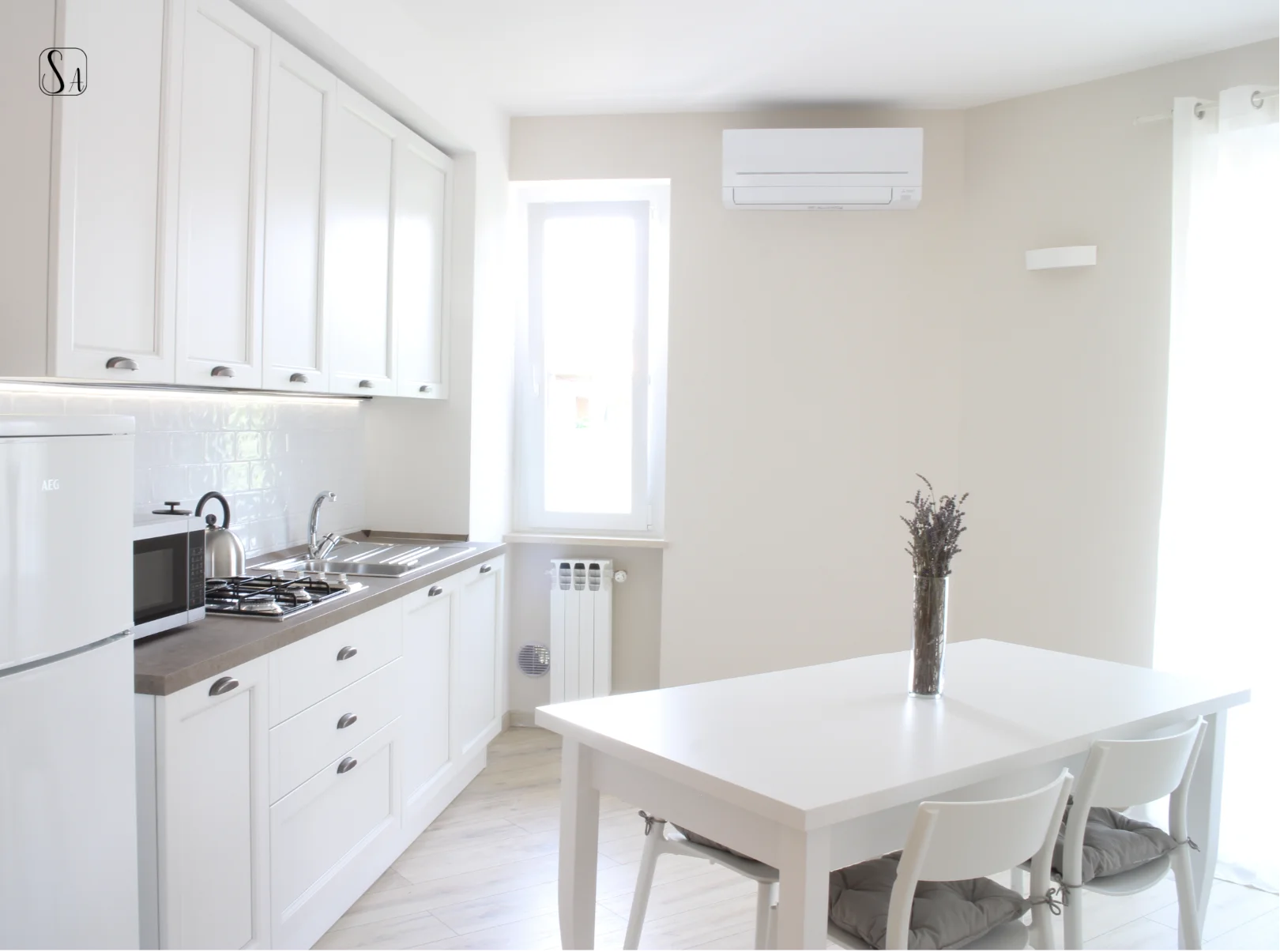 Attico bilocale, al secondo e ultimo piano di una piccola palazzina circondata dal verde, luminoso, adatto a coppie e famiglie.